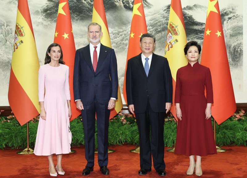费利佩六世表示,很高兴在西中全面战略伙伴关系20周年之际对中国进行国事访问。西班牙同中国的友好交往源远流长,建交以来,两国始终相互信任、相互尊重,致力于共同发展繁荣。中国的发展成就举世瞩目,令人钦佩,特别是在脱贫和绿色低碳发展方面的成功经验值得借鉴。西班牙政府坚定不移奉行一个中国政策,支持维护国家领土完整,愿同中方推动两国全面战略伙伴关系不断向前发展,为两国人民带来更多福祉,为世界和平稳定作出更大贡献。中国企业投资有力促进了西班牙经济发展和绿色转型。西方愿同中方保持密切交往,把握中方实施“十五五”规划带来的重要机遇,加强经贸、工业、科技、绿色能源等领域合作。感谢中方对西班牙实施免签政策,愿密切文化、语言、旅游领域交流,增进人民友好。历史只能向前,不能倒退。西中两国在很多国际问题上理念高度一致,都支持多边主义,支持通过对话协商解决争端。西班牙高度赞赏习近平主席提出的四大全球倡议,愿同中方共同应对国际形势中的不确定性,维护国际贸易秩序,促进全球经济稳定发展。
