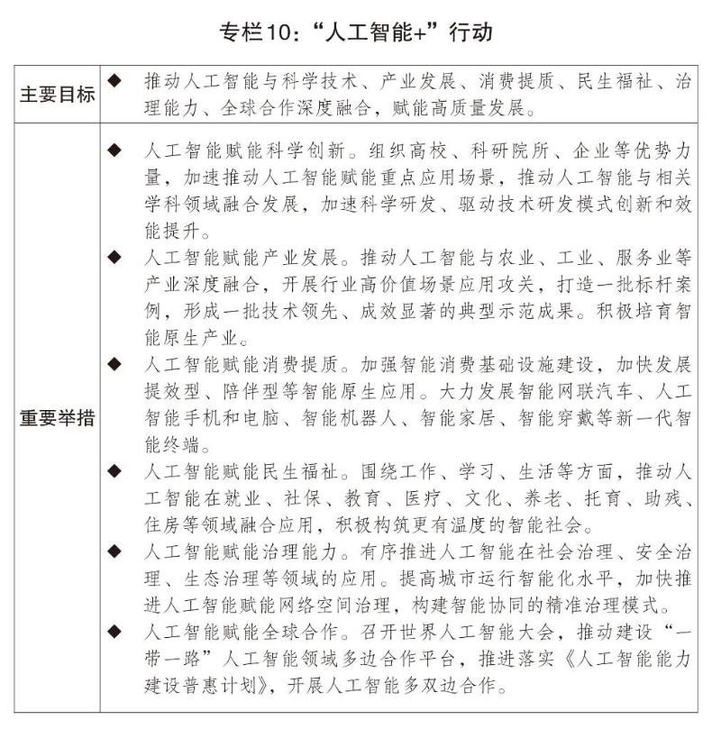 四是深入推进数字中国建设。深入实施“人工智能+”行动,高质量建设国家人工智能应用中试基地,推动人工智能在重点行业领域商业化规模化应用。支持人工智能开源社区建设,促进模型、工具、数据集等汇聚开放。发展新一代智能终端以及模型即服务、智能体即服务等新产品新业态。加快建设全国一体化算力网,优化国家算力资源布局,支持公共云发展。推动完善人工智能领域法律法规。加快构建人工智能安全风险防治体系。健全数据要素基础制度,出台建设全国一体化数据市场的政策,积极推进数据流通利用基础设施建设和运营,深入推进数据要素综合试验区建设。加快公共数据资源开放共享和开发利用,深入推进可信数据空间创新发展试点、数据产业集聚区建设试点。构建数字产业集群梯次布局体系,高质量推进数字经济创新发展试验区建设。实施数据赋能工程,建设数智化转型促进网络。推进城市全域数字化转型。实施工业互联网创新发展工程。强化平台经济常态化监管,推动平台企业和平台内经营者、劳动者共赢发展。