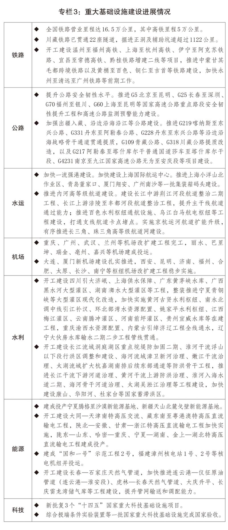 二是投资补短板调结构加力增效。统筹用好各类资金支持重点项目建设,持续优化中央预算内投资结构,扩大地方政府专项债券投向领域和用作资本金范围,指导专项债券“自审自发”地区扎实有序开展相关工作。推动“十四五”规划102项重大工程项目顺利实现规划目标任务,开工建设雅下水电等标志性工程。现代化基础设施体系建设深入推进,国家综合立体交通网“6轴7廊8通道”加速完善。规范和加强中央投资项目审批管理,提高政府投资效益。出台进一步促进民间投资发展政策措施。滚动向民间资本推介5400多个项目,涉及总投资超过3.9万亿元。加大基础设施竞争性领域向各类经营主体公平开放力度,5个新核准核电项目引入民间资本参股比例最高达20%,大渡河丹巴水电站等项目加快引入民间资本。推动基础设施领域不动产投资信托基金(REITs)扩围扩容,算力设施、城镇供热、农贸市场、城市更新、专业仓库等领域实现“首单”发行。2025年工业投资、制造业投资分别增长2.6%、0.6%。