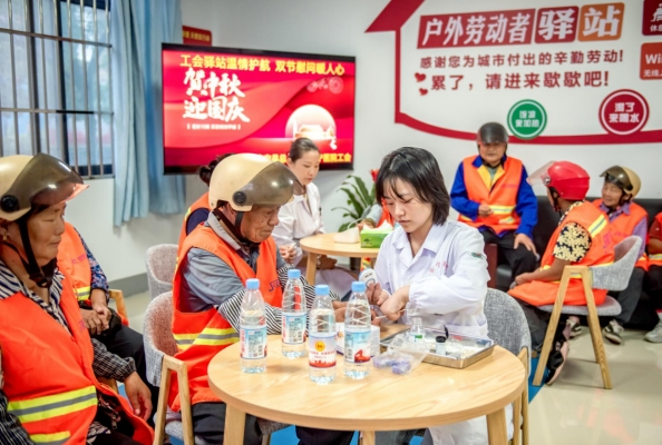 这个国庆中秋假期,来安县家宁医院工会驿站里,热度不减。不大的空间,装得下满满的暖意——环卫工人正用微波炉“叮”热自带的饭菜,外卖小哥弯腰接满一壶热水,出租车师傅靠在椅子上歇歇腿。志愿者也没闲着,一会儿帮着续水,一会儿张罗热饭,忙个不停。